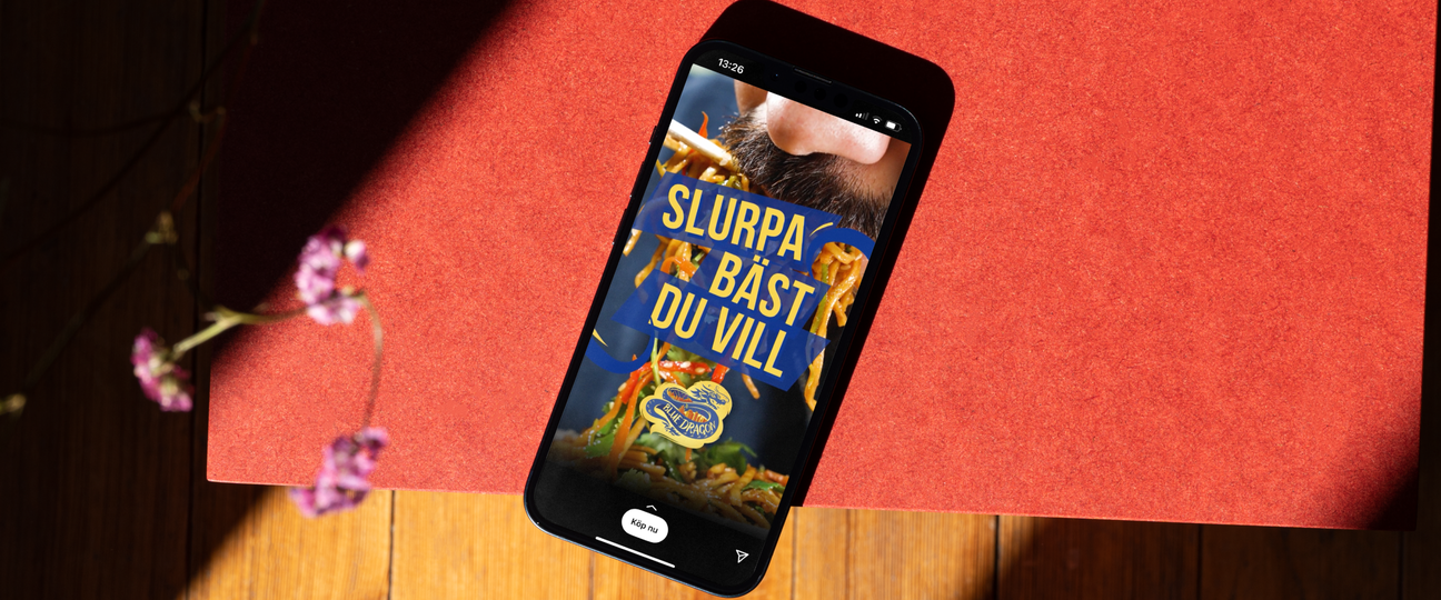 Svaret hittade vi i konceptet “Ät på ditt sätt”, inspirerat av mukbangtrenden. Vi skapade tre filmer med några av Blue Dragons viktigaste produkter där fullt fokus låg på att “goffa” mat. Med konceptet ville vi fånga tittarnas uppmärksamhet och förmedla den tillfredsställande och smakrika känslan som mat lagad med Blue Dragons produkter ger. Vi valde att göra det ingen annan gör – låta mottagaren komma närmare känslan av att smaka på maten.